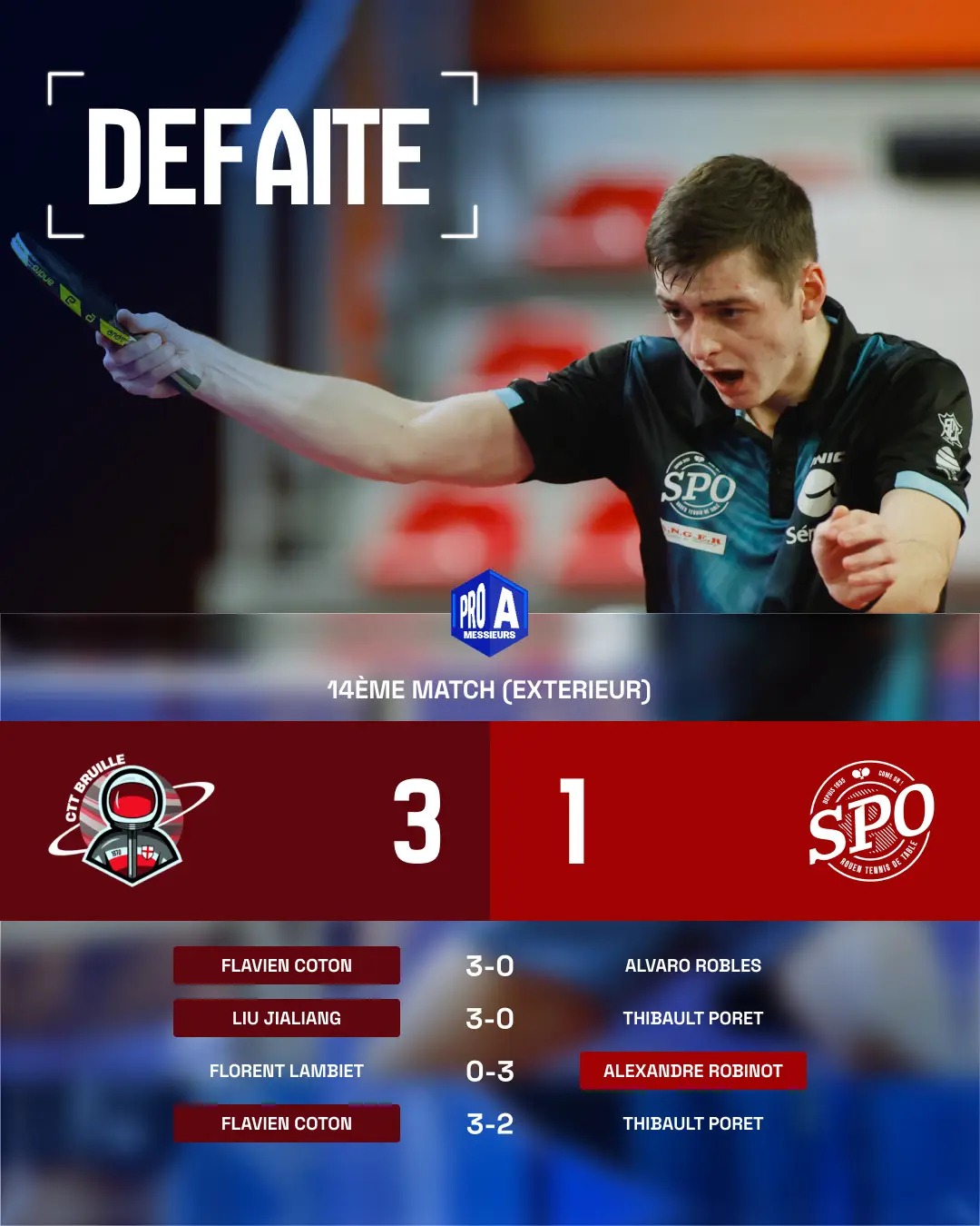 Après être passé tout près de la victoire, il était du devoir de notre N° 1 Thibault Poret de conclure cette rencontre en s’imposant face à Joao Geraldo. Malheureusement, Thibault paru emprunté et ne trouva à aucun moment les solutions pour inquiéter le leader d’Angers qui s’imposait en trois sets secs.