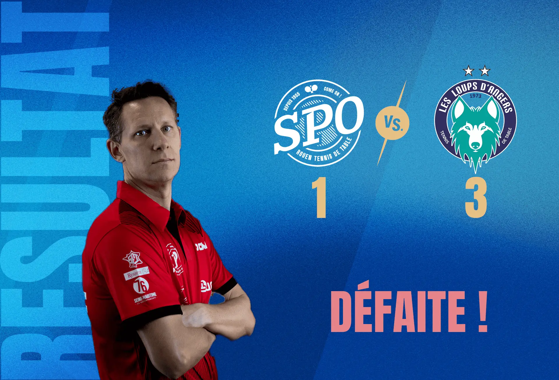 Pour la troisième partie, Lilian BARDET, de retour d’un magnifique open d’Italie lui permettant d’entrer pour la première fois de sa carrière dans le TOP80 Mondial, était opposé à l’expérimenté Suédois Jon PERSSON, qui dispose maintenant d’une doublette casquette de joueur Pro et d’entraîneur de l’équipe nationale Suédoise. Après un bon début de match, notre Coyote, a manqué une belle occasion dans la troisième manche de virer en tête. Malheureusement, le tennis de table de très haut niveau se joue sur des petits détails, et notre Coyote, quelque peu émoussé de ses dernières sorties internationales couronnées de succès, s’est incliné sur le fil 3 manches à 2, ne permettant malheureusement pas à son équipe de basculer en tête après la pause.