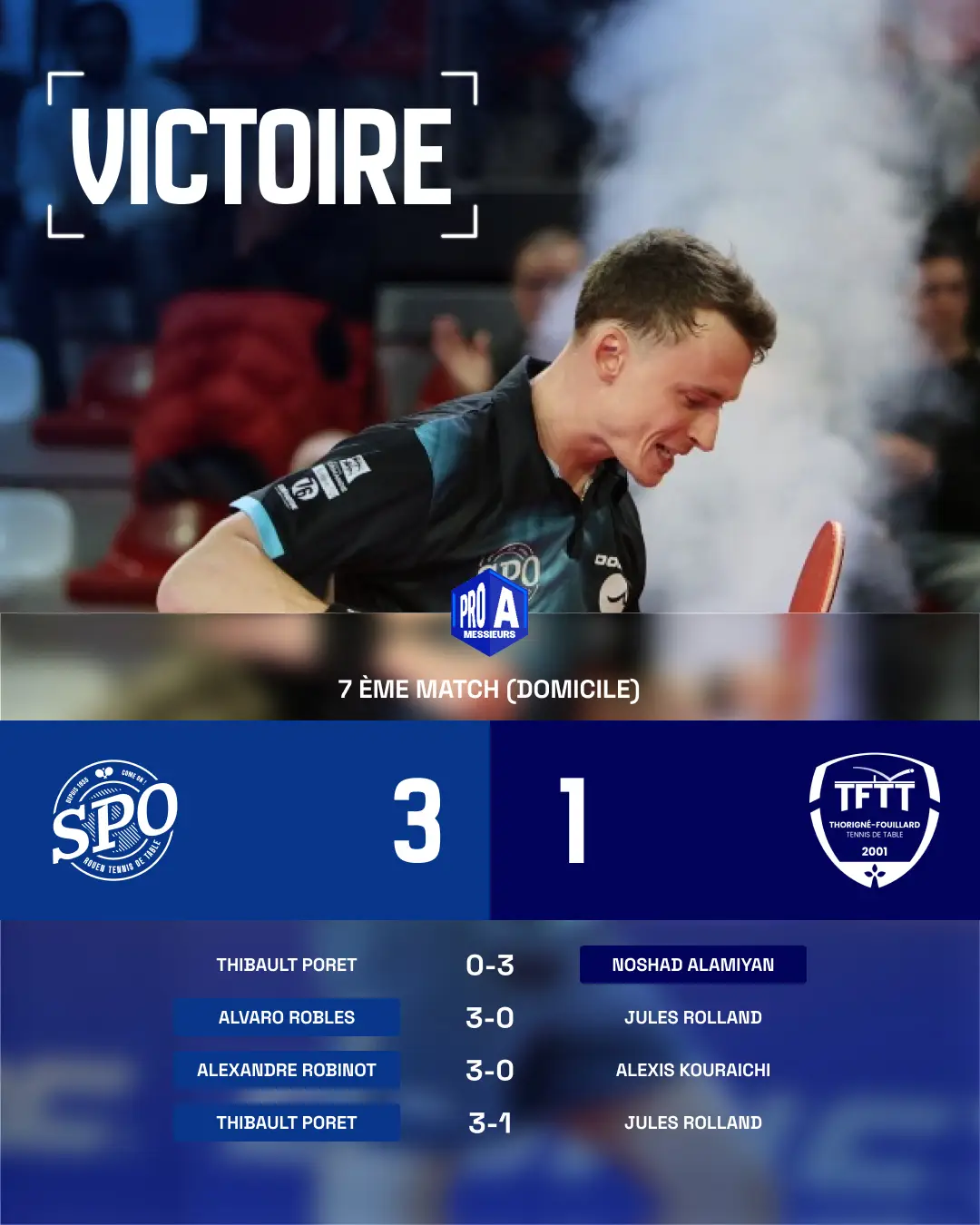 Pour la quatrième partie, Robert GARDOS, de retour dans l’aire de jeu face au très élégant Joao GERALDO, est resté spectateur de son adversaire, d’une réussite monstre avec un niveau de jeu exceptionnel. Grâce à son orgueil et son expérience, Robi réussit à élever son niveau de jeu et à trouver quelques solutions pour faire douter son adversaire. Cependant, l’Angevin était bien trop fort ce soir pour passer à la trappe. Défaite 3-1 qui scelle le sort de nos Coyotes.